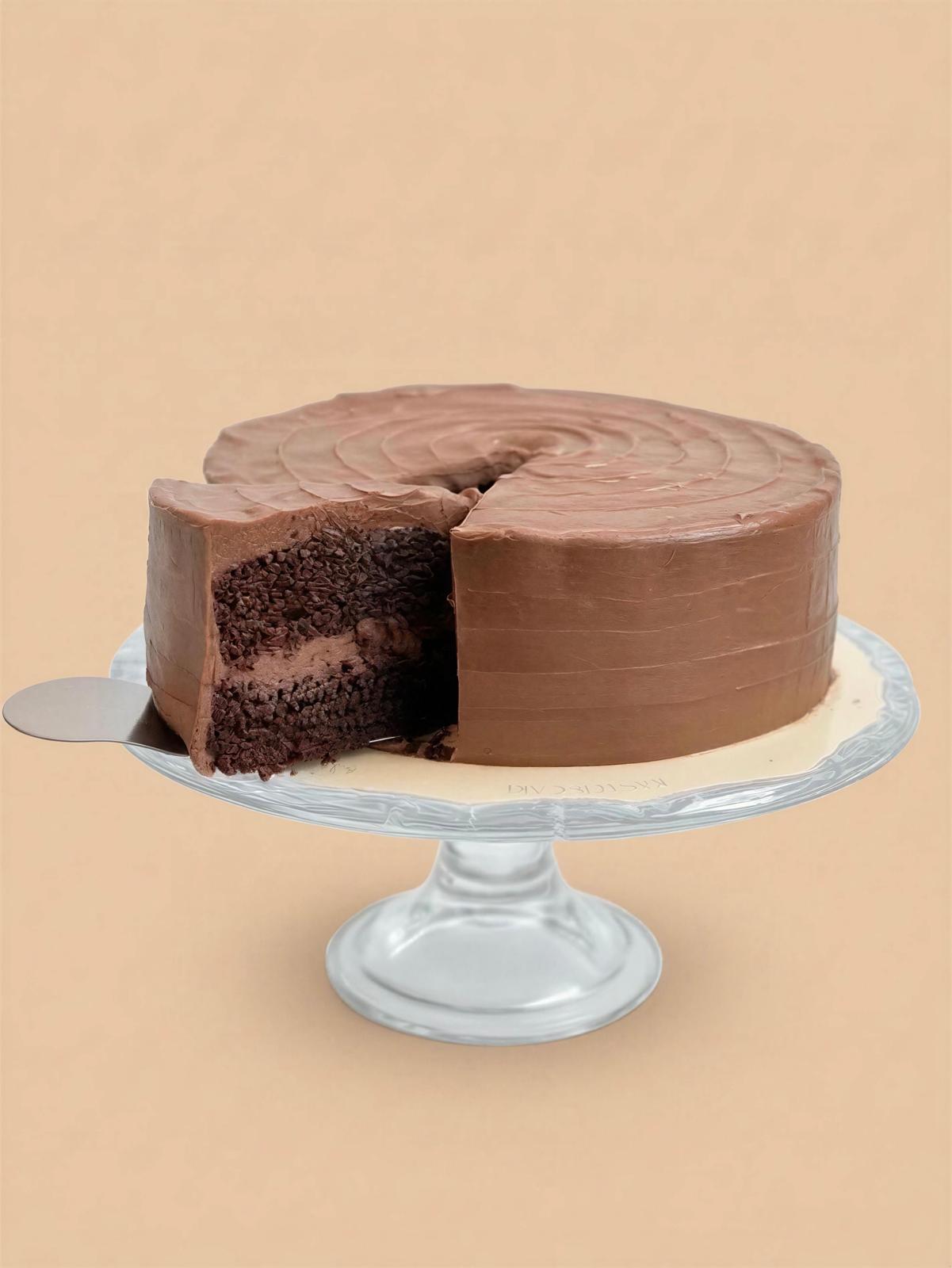 Rich chocolate cake made with pure cocoa, featuring a soft, melt-in-your-mouth texture, topped with a smooth and creamy premium ganache. A perfect indulgence for true chocolate lovers in every bite.